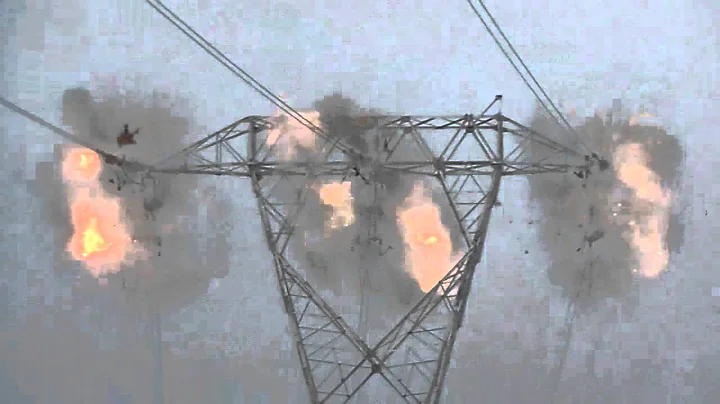 Two ends of a conductor are joined together using an explosive sleeve on the Northwest Transmission Line in northwest B.C..